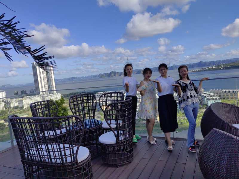 晚上入住的下龍灣五星級(jí)酒店十分豪華,房間布置豪華漂亮,打開(kāi)窗簾面向大海,更有特色的是樓頂有游泳池、咖啡廳等,可以上去游泳、邊喝咖啡邊靠在椅子上觀看整個(gè)下龍灣的夜景,這也是拍照的絕佳好去處,公司男同事忙著游泳、女同事則忙著合影留念,忙的不亦樂(lè)乎。